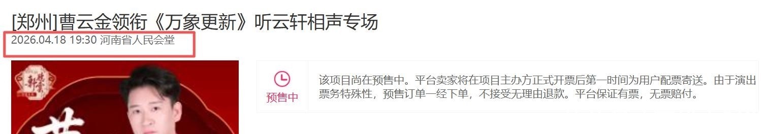 2026年1月,他在济南奥体中心举办个人万人演唱会;