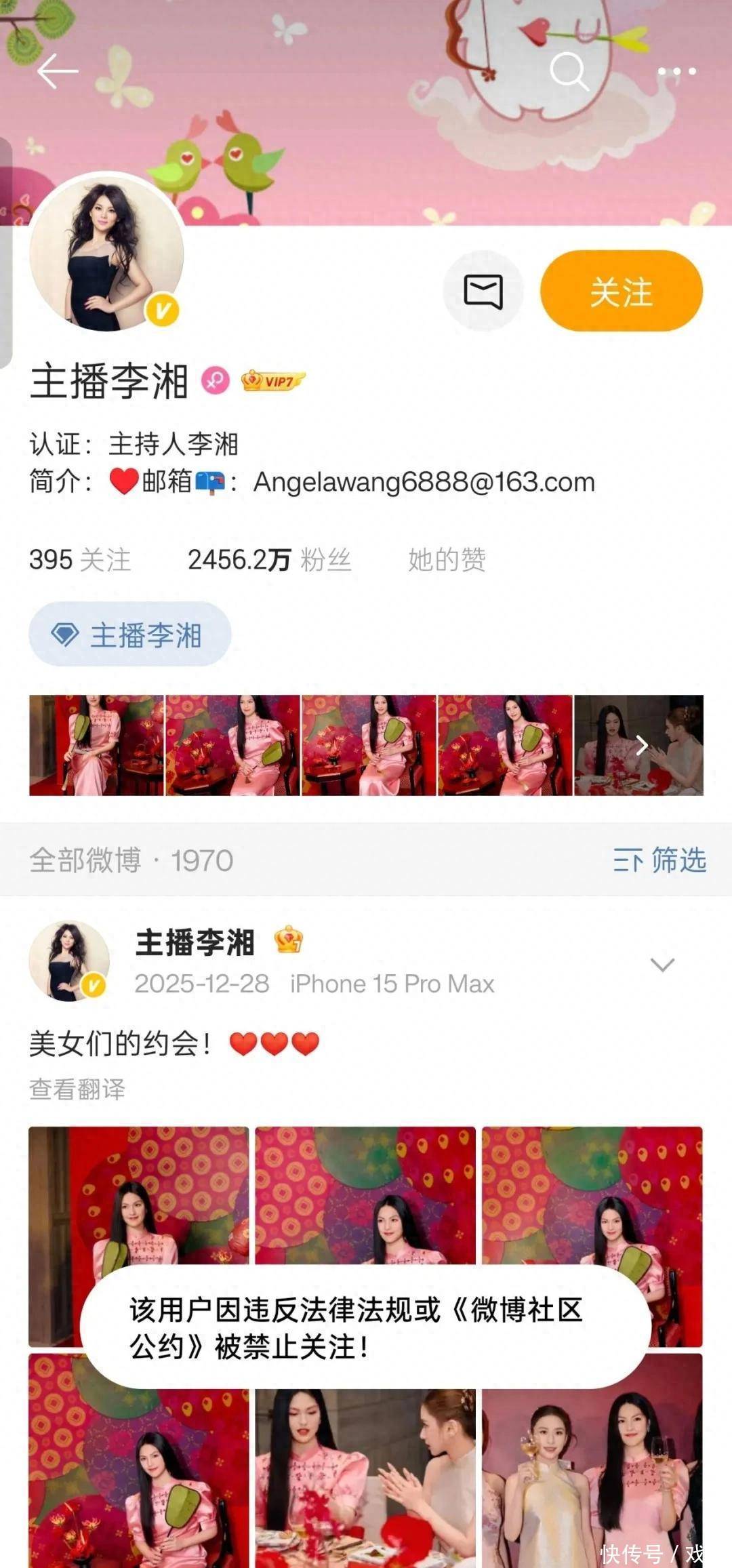 2026年1月16日,一则关于知名艺人李湘的账号变动消息引发全网关注——其微博、抖音、小红书三大平台账号同步被标记为“禁止关注”状态,历史内容虽未下架仍可正常查看,但新用户无法添加关注,平台给出的统一提示均为“违反法律法规或社区公约”,这一跨平台协同处置动作迅速将事件推向舆论焦点。